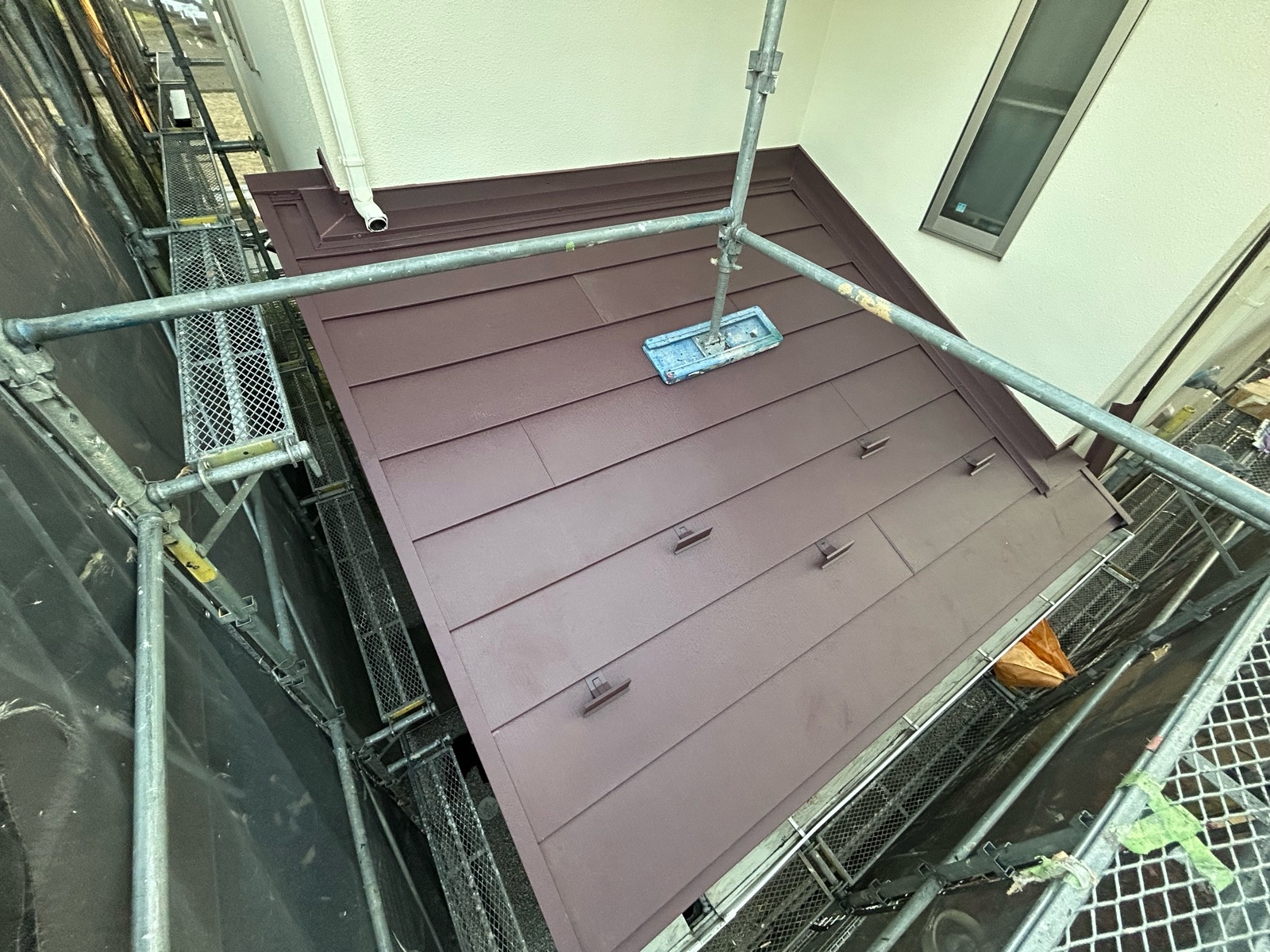 その上から新しい屋根材として スーパーガルテクト を施工しました。