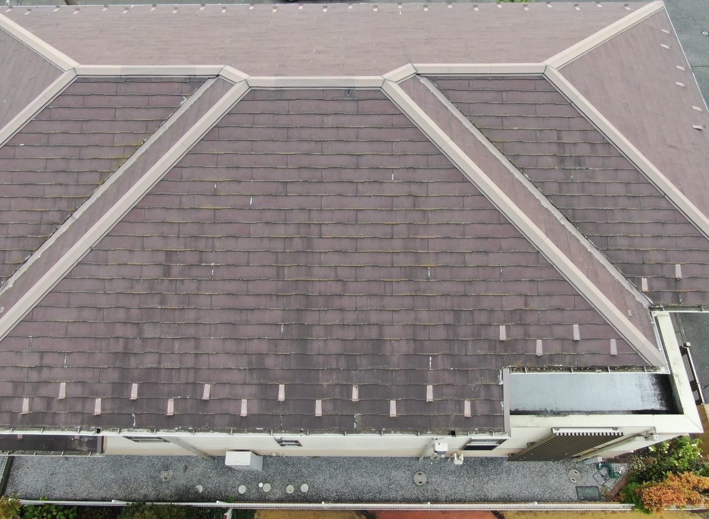 施工前はコロニアル屋根で、経年劣化による色あせや傷みが見られる状態でした。