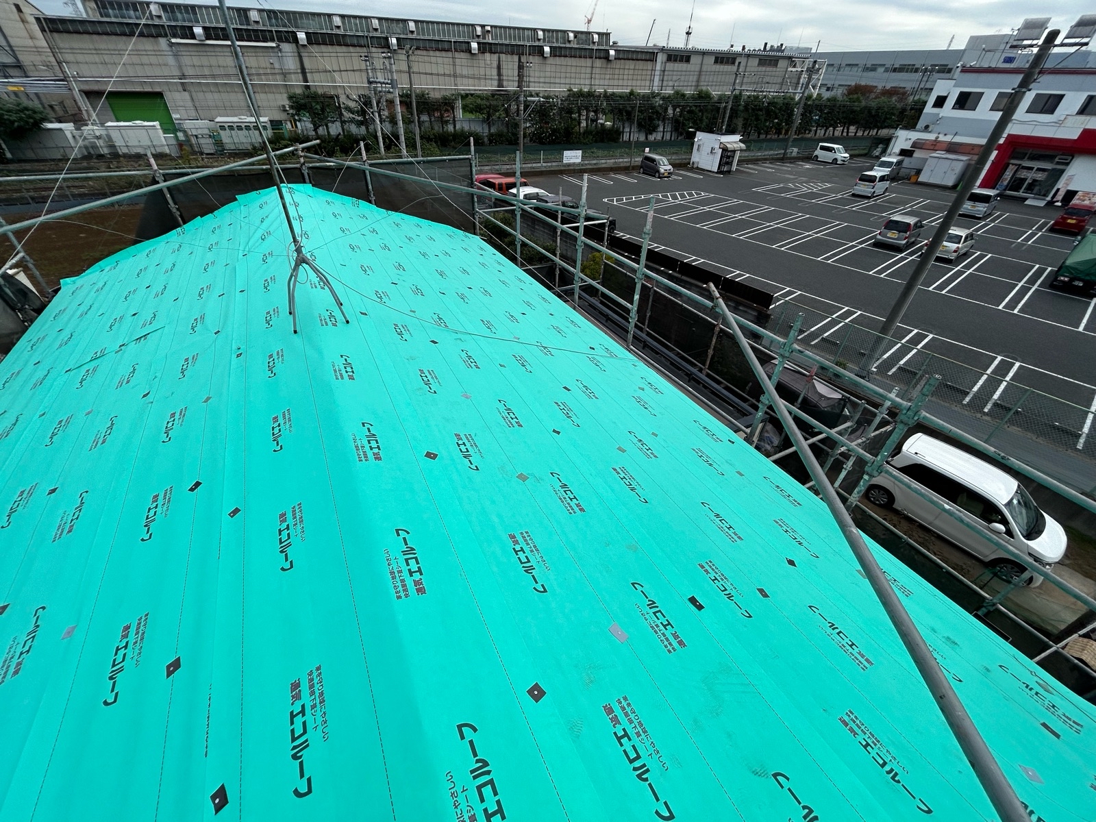 施工前に設置されていたソーラーパネルを一度取り外し、屋根全体をしっかり施工しています。