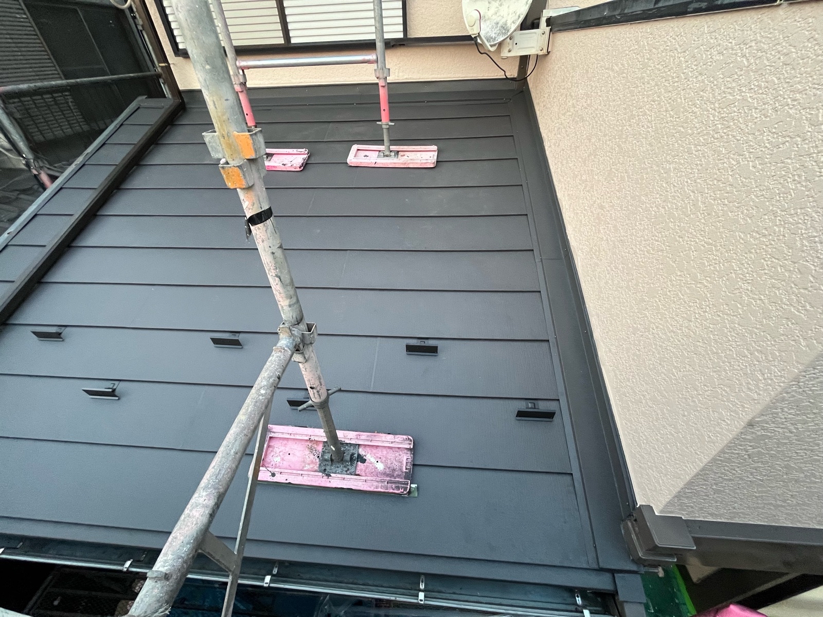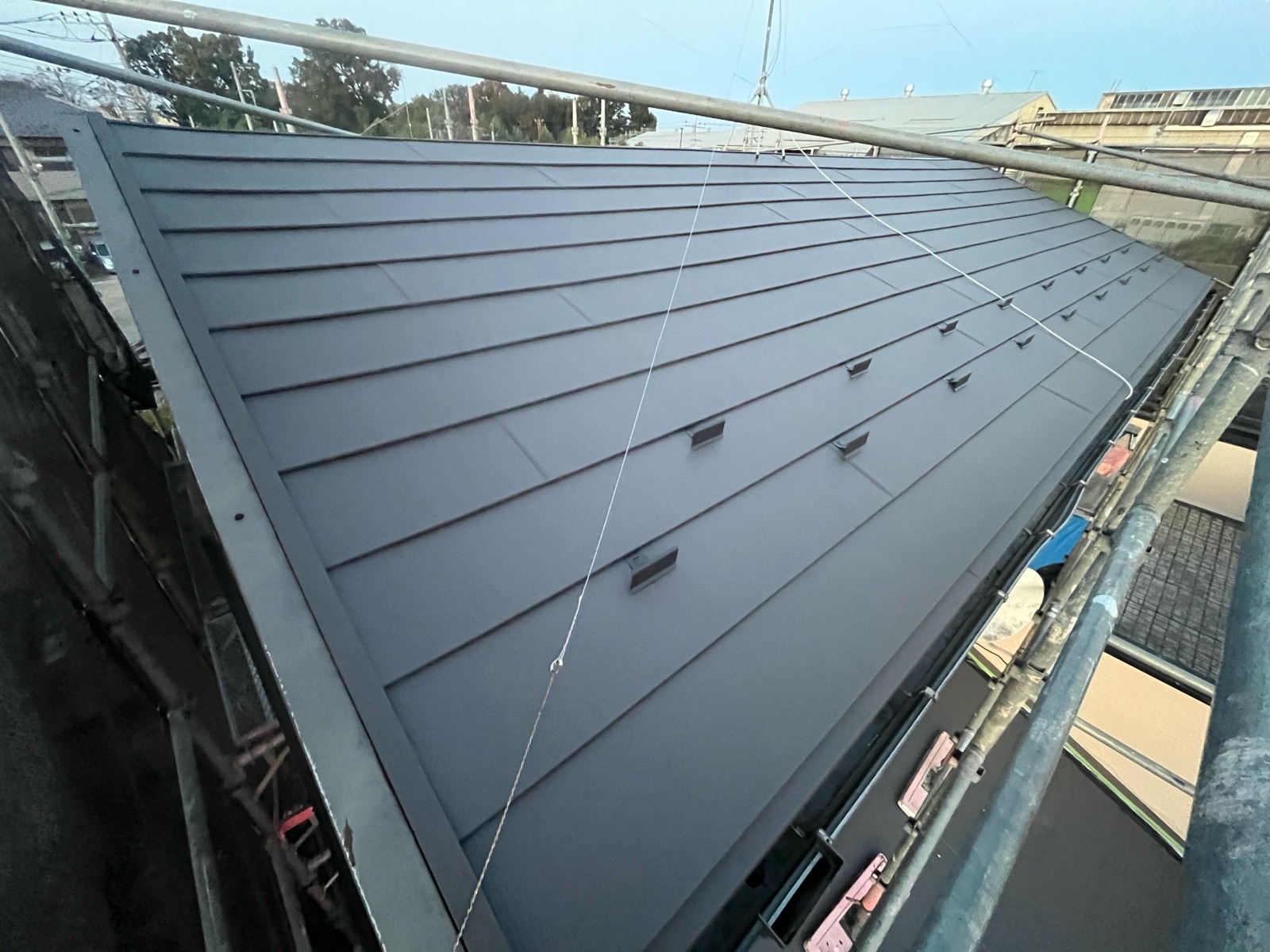 新しい屋根材には、高耐久・高断熱の「スーパーガルテクト」を採用。