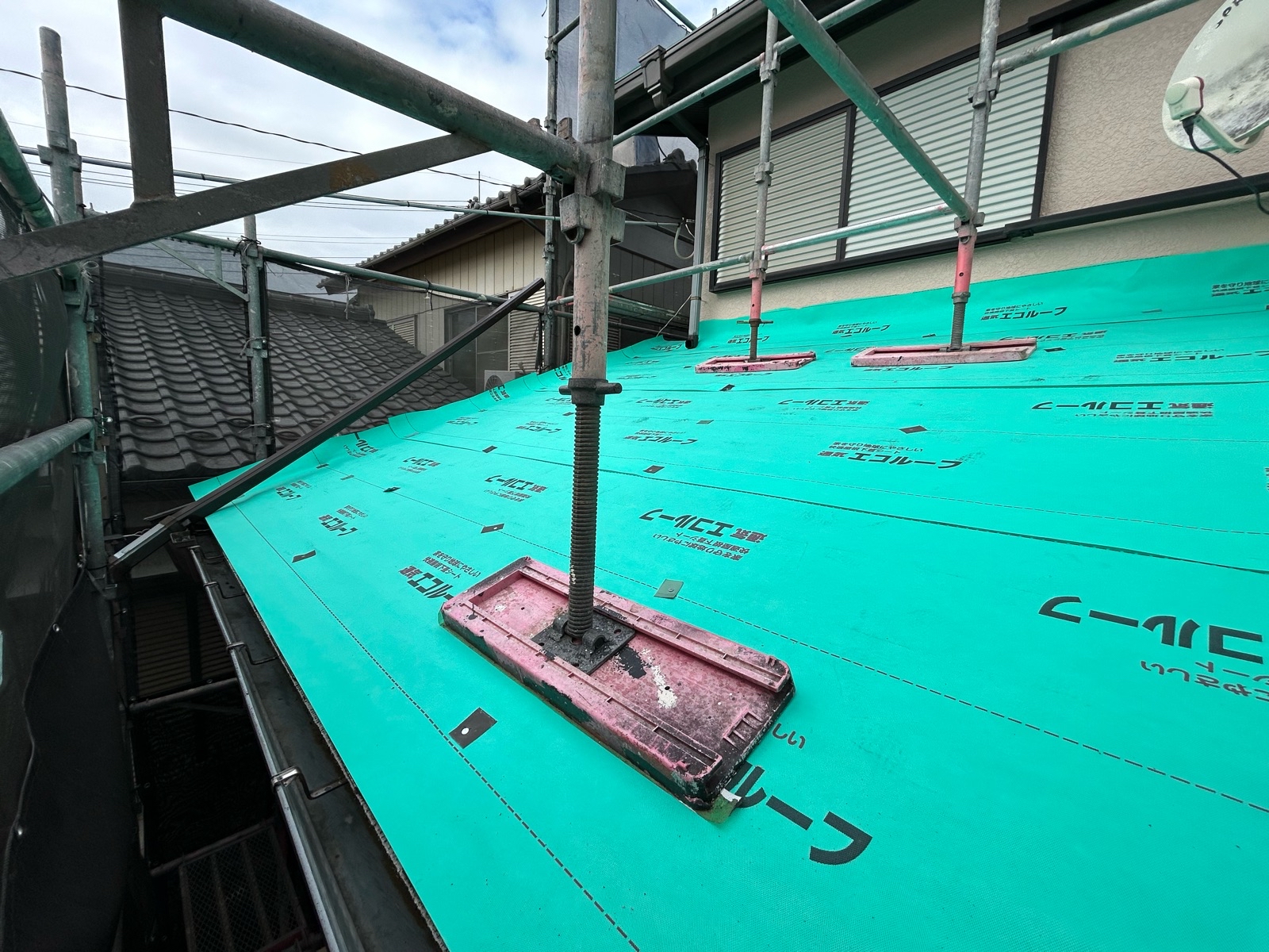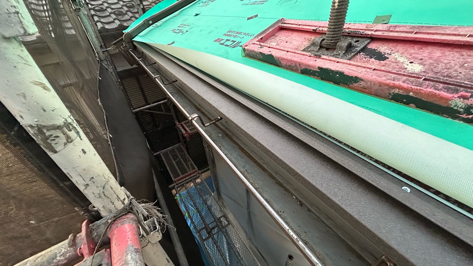今回は大屋根だけでなく、下屋根もあわせて施工。