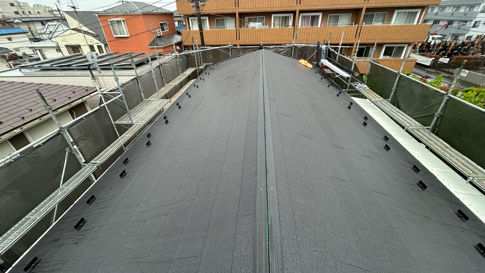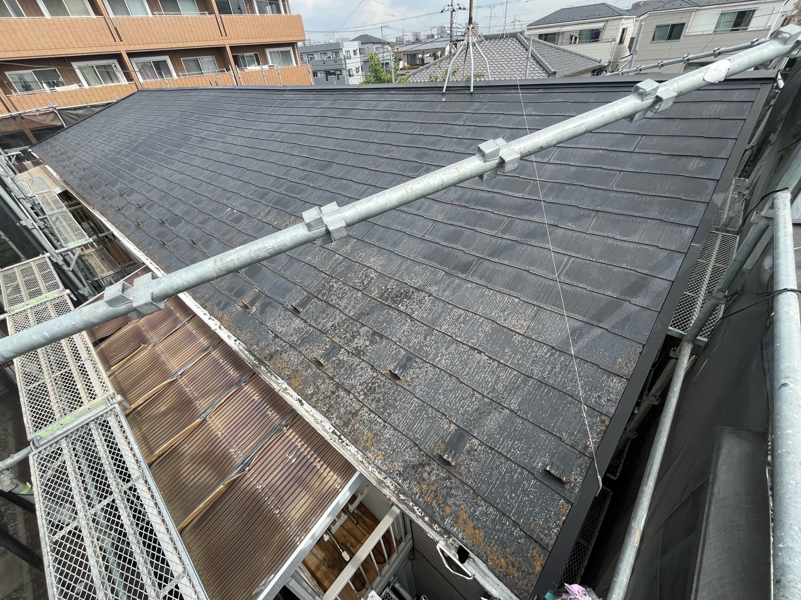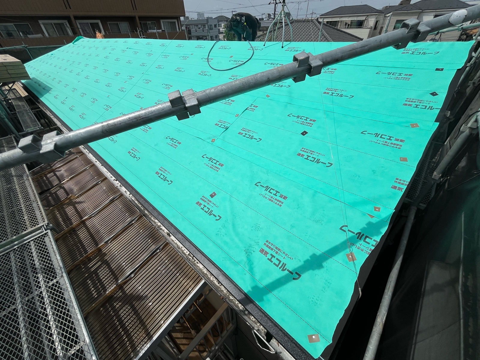 今回は既存の屋根材を撤去せず、そのまま上から新しい屋根材を重ねる「カバー工法」を採用。