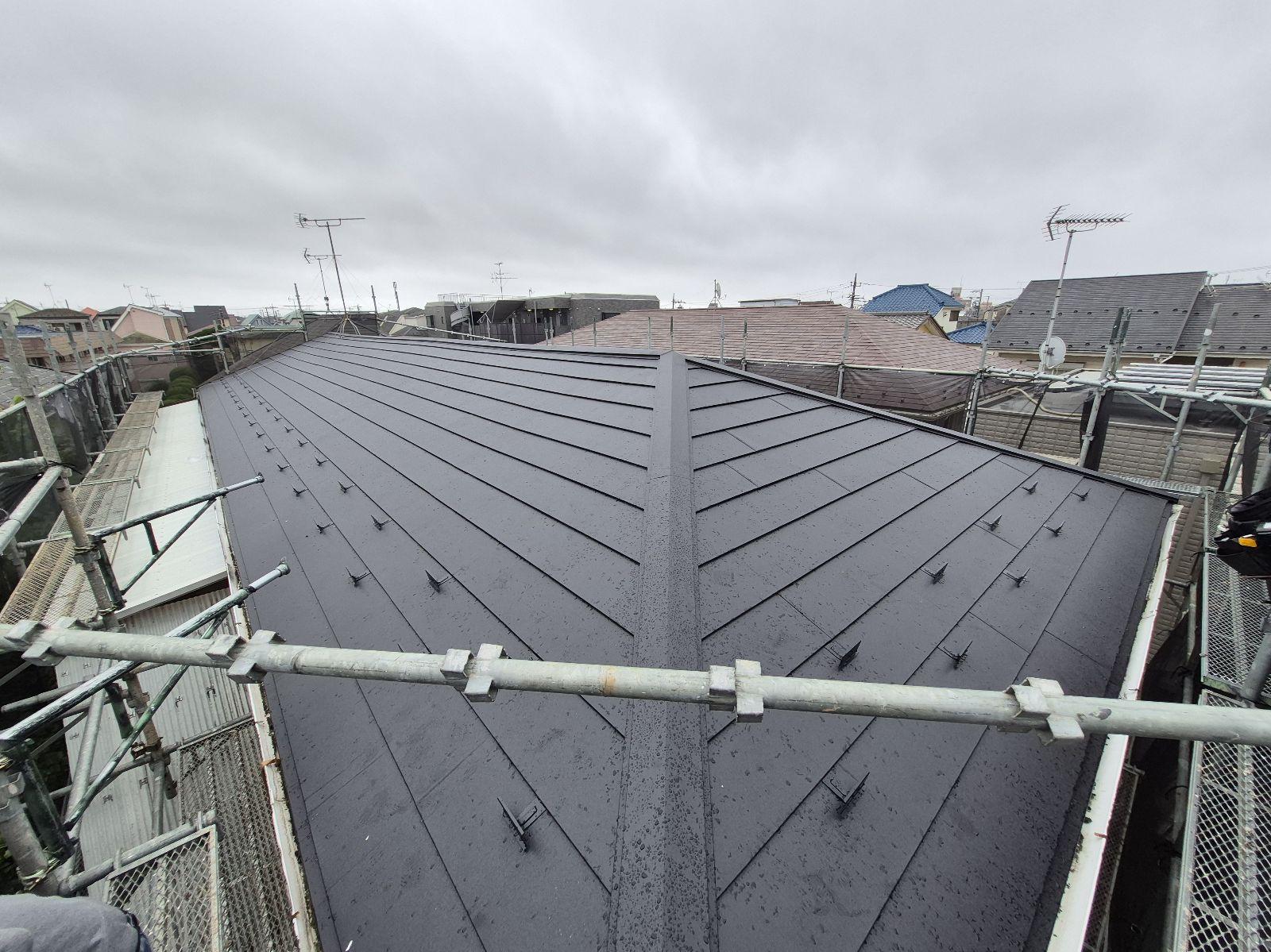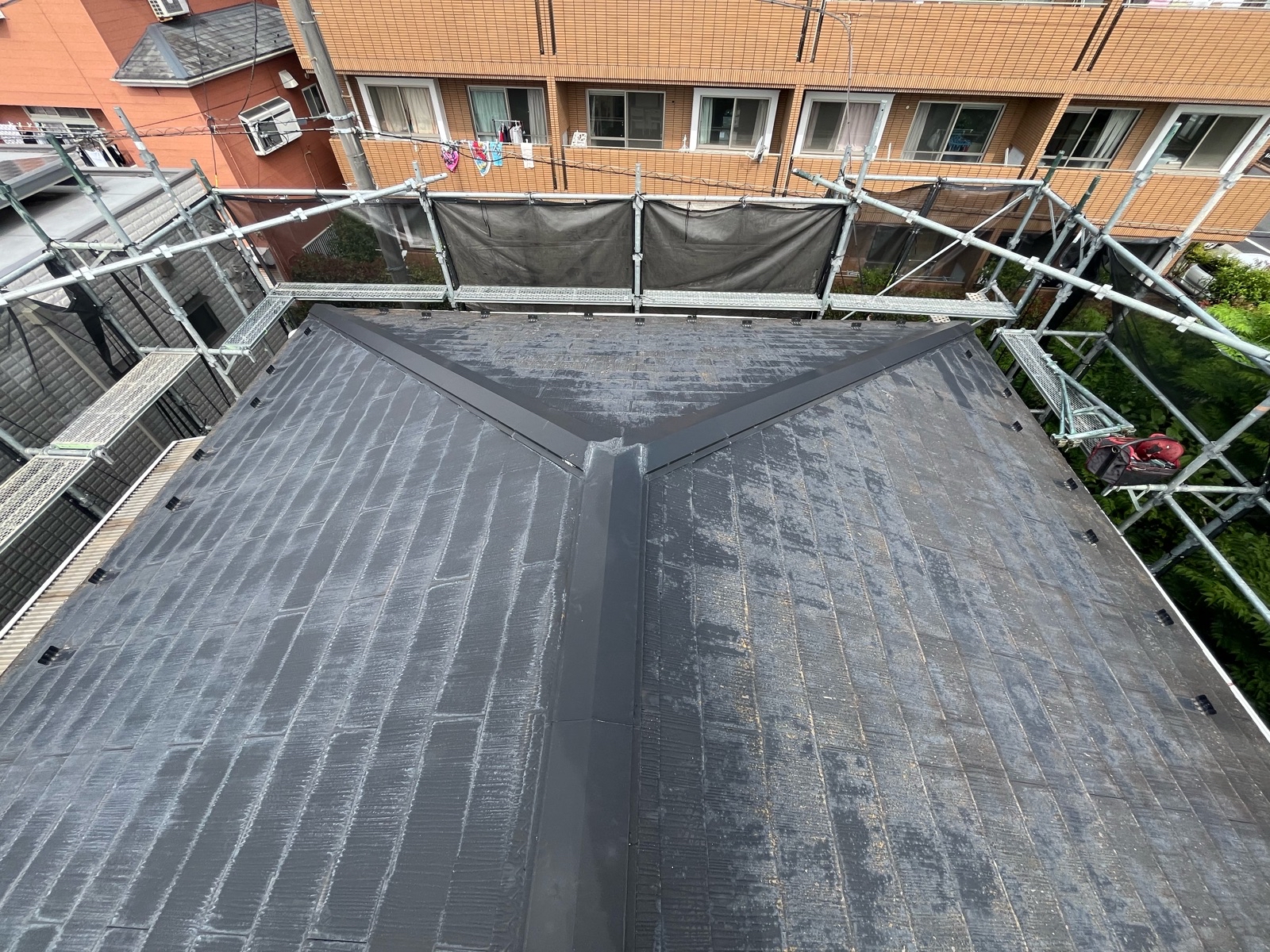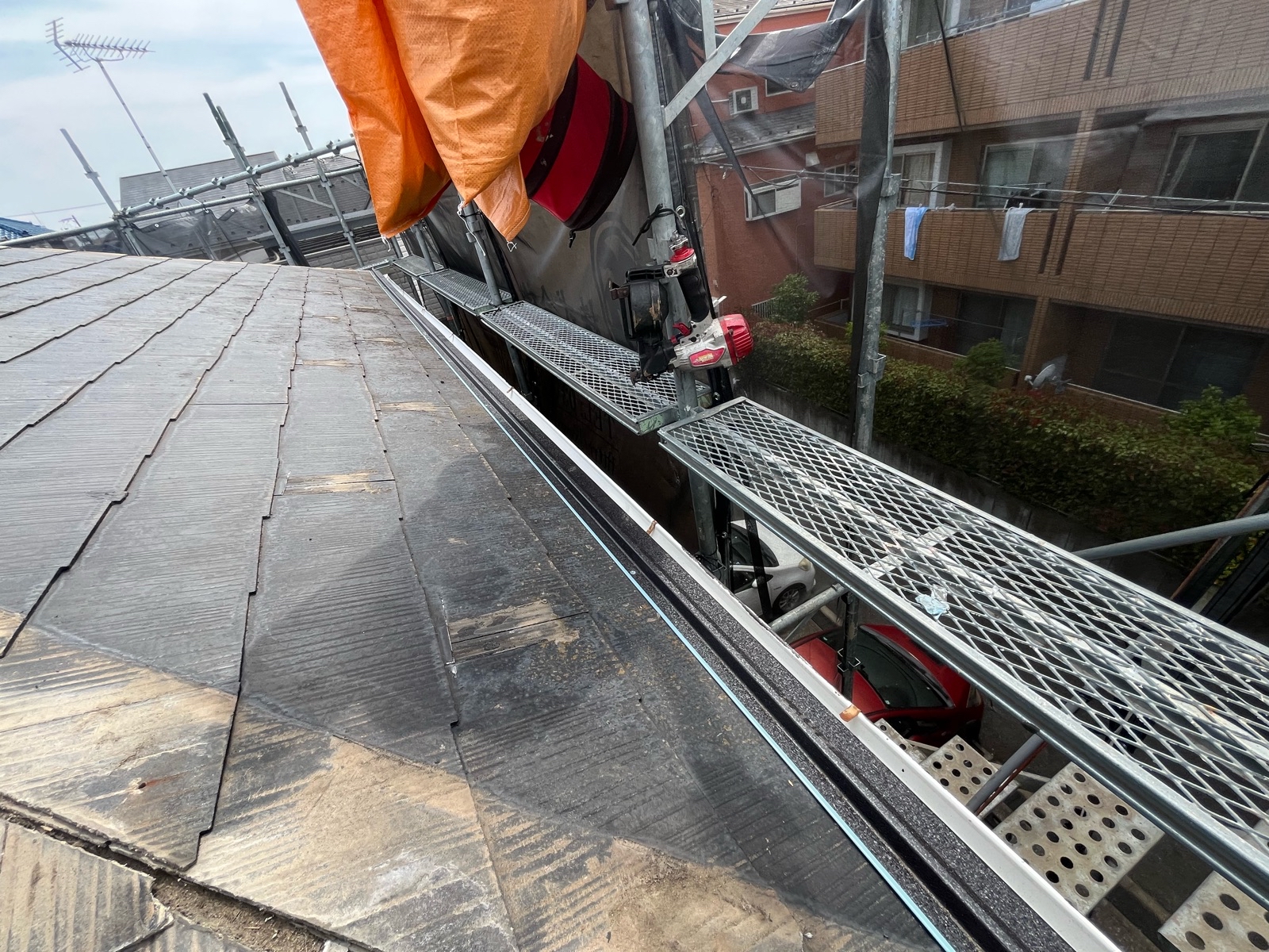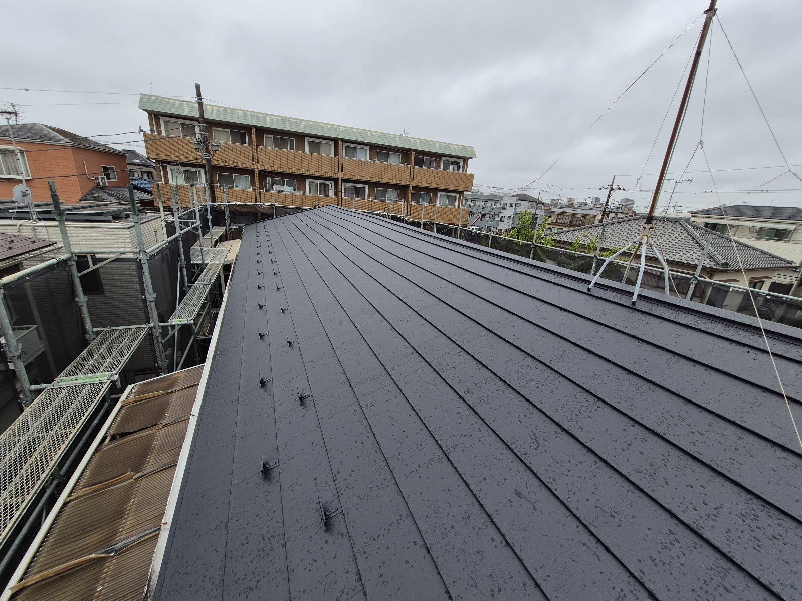 今回は既存の屋根材を撤去せず、そのまま上から新しい屋根材を重ねる「カバー工法」を採用。