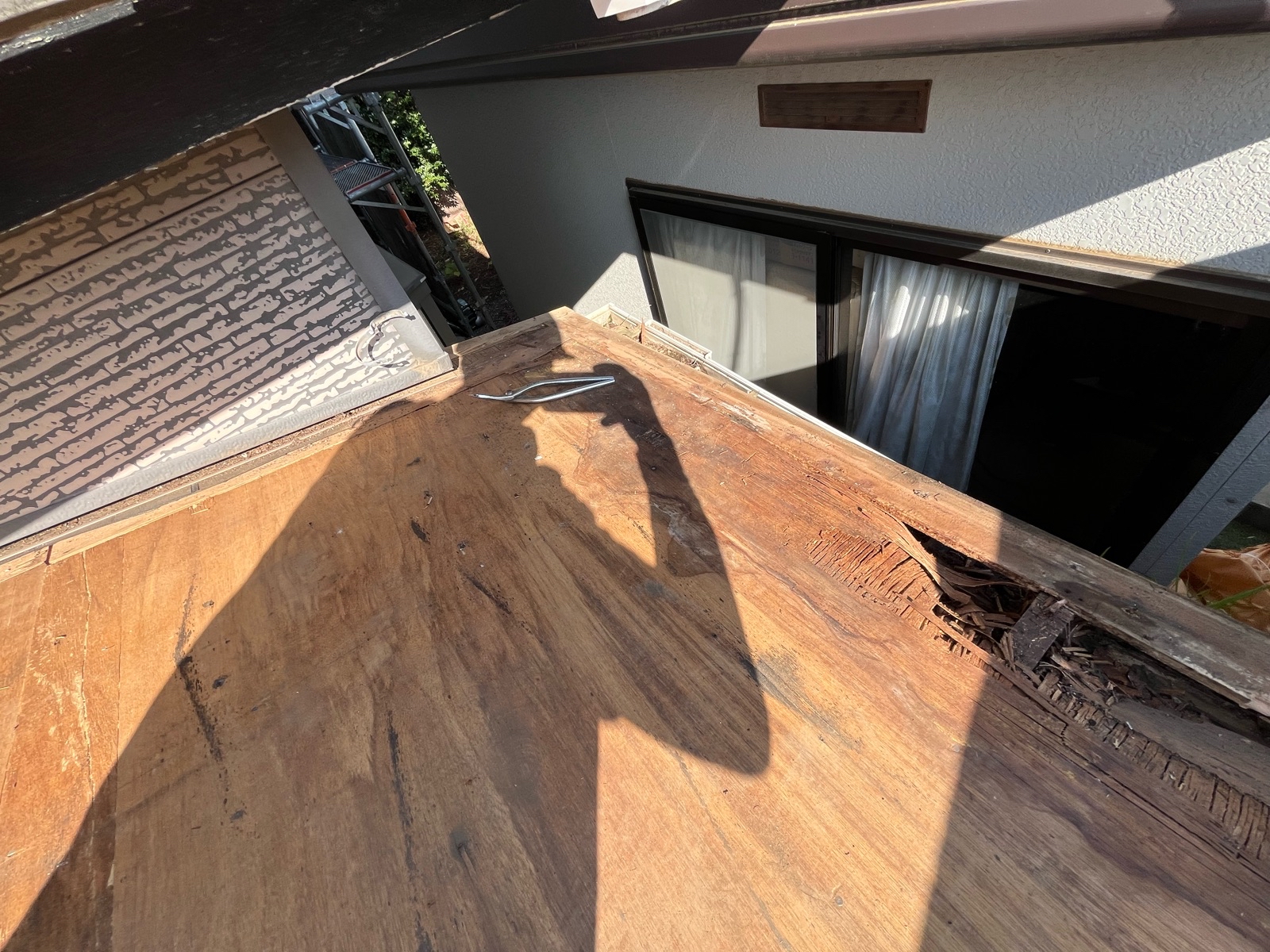既存屋根を撤去したところ、下地の劣化・腐食が確認されたため、下地を新しく交換。