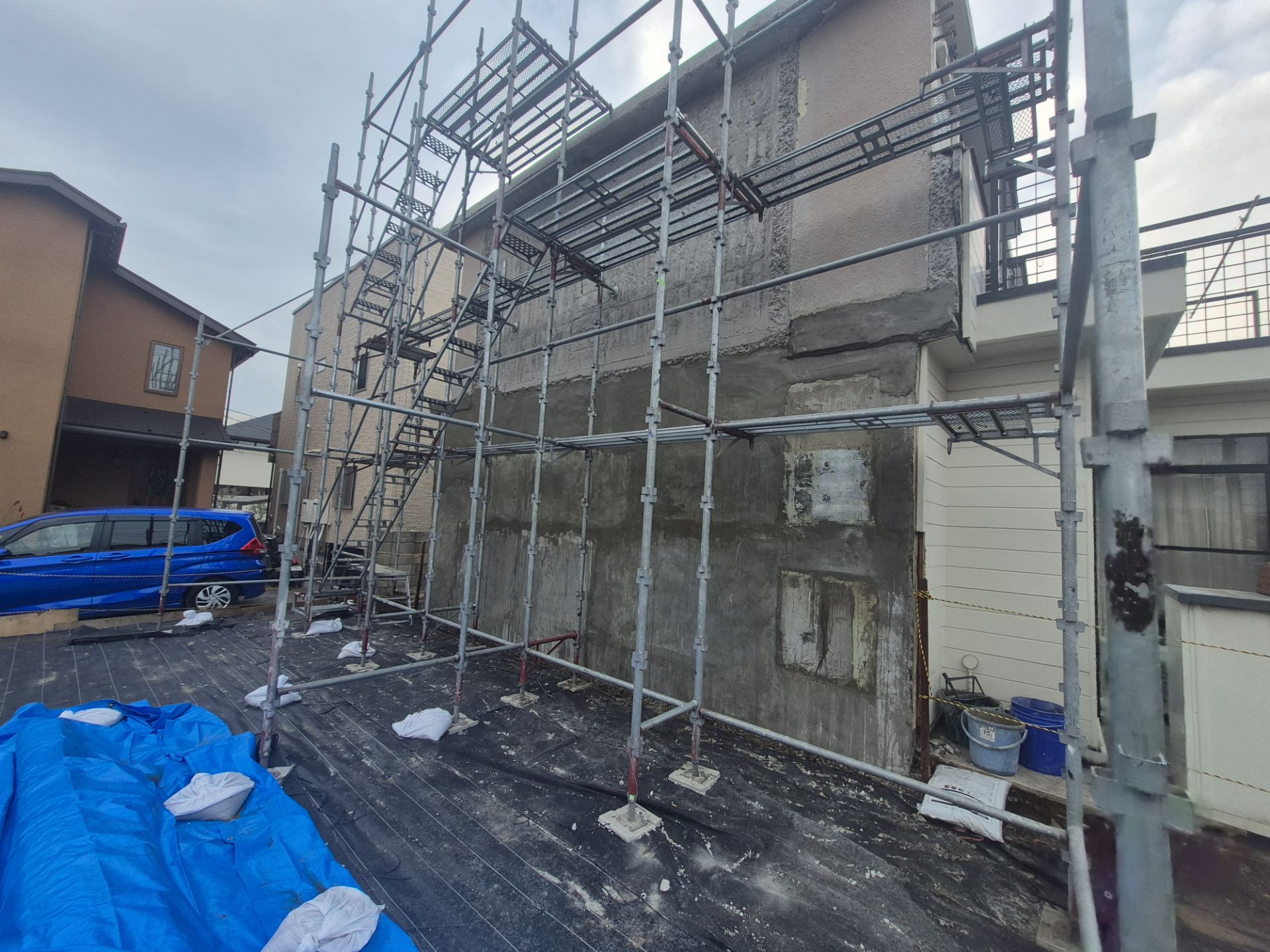 老朽化に伴い、外壁のモルタル補修および外壁材の張り替え工事を実施しました。
